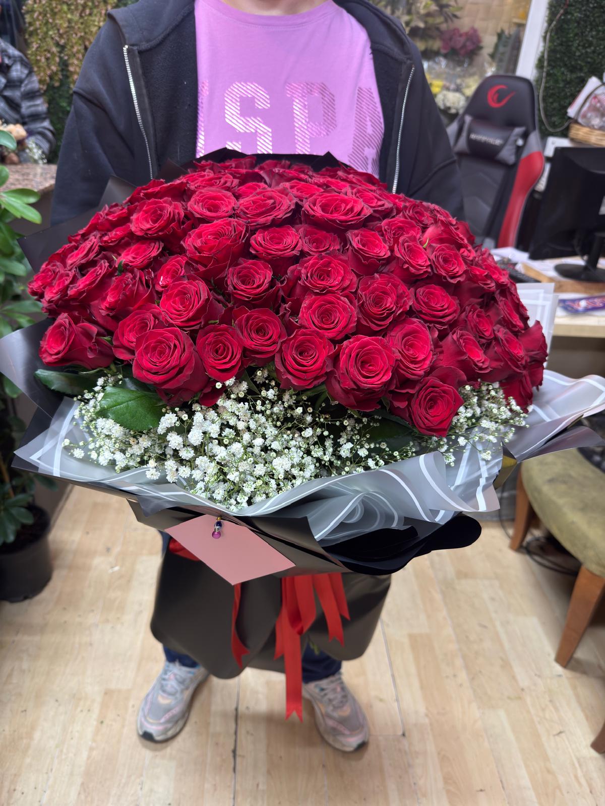 101 Kırmızı Gülden Oluşan Çiçek Buketi – Aşkın En Görkemli Hali ❤️????