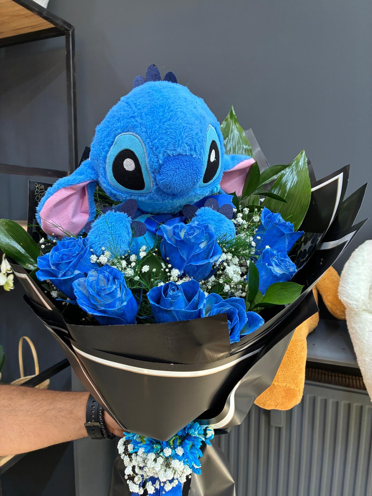 7 Mavi Gül Peluş Stick Buketi – Tasarım Çiçekle Sevgiyi En Sevimli Haliyle Sunun ????????
