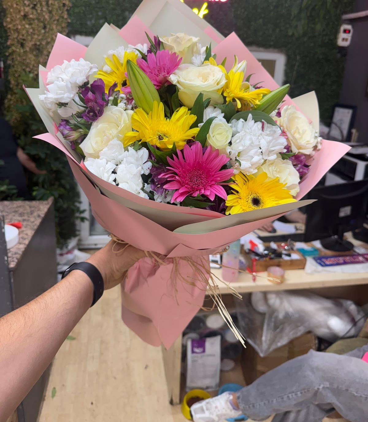 Kır Çiçeklerinden Oluşan Karışık Çiçek Buketi, taptaze ve mis kokulu çiçeklerin zarif bir uyumla birleştiği özel bir tasarımdır. Canlı renkleriyle mutluluk, sevgi ve içtenliği ifade eder.