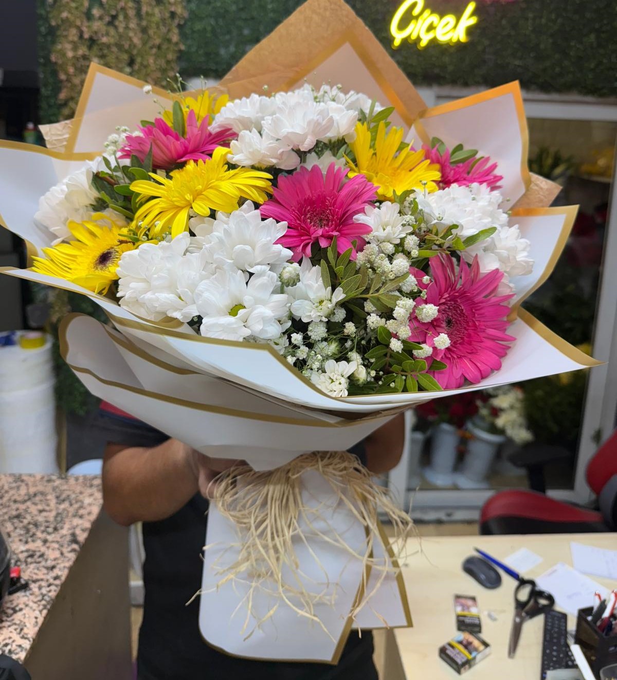 Karışık Mevsim Buketi, doğanın enerjisini ve renk cümbüşünü sevdiklerinize ulaştırmanın en güzel yoludur. Her biri özenle seçilen mevsim çiçekleri, zarif bir uyum içinde hazırlanarak mutluluğu ve canlılığı simgeler.