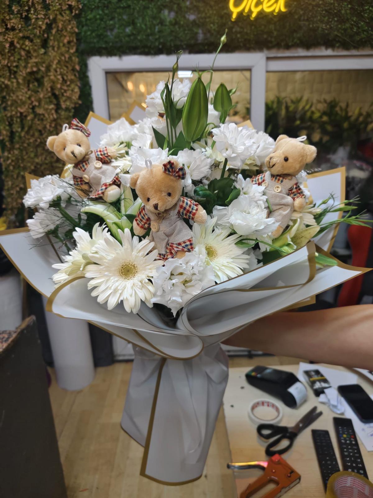 Mini Peluş Ayıcıklı Beyaz Güzellik Kır Buketi