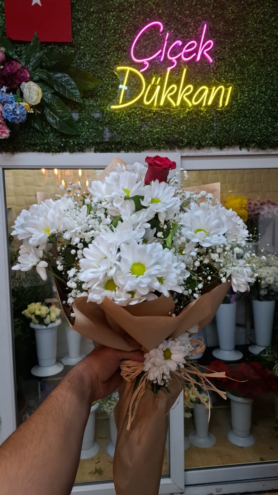 Saflığı simgeleyen beyaz papatyalar ile aşkın sembolü tek kırmızı gülün buluştuğu bu özel buket, duygularınızı en içten haliyle ifade eder.